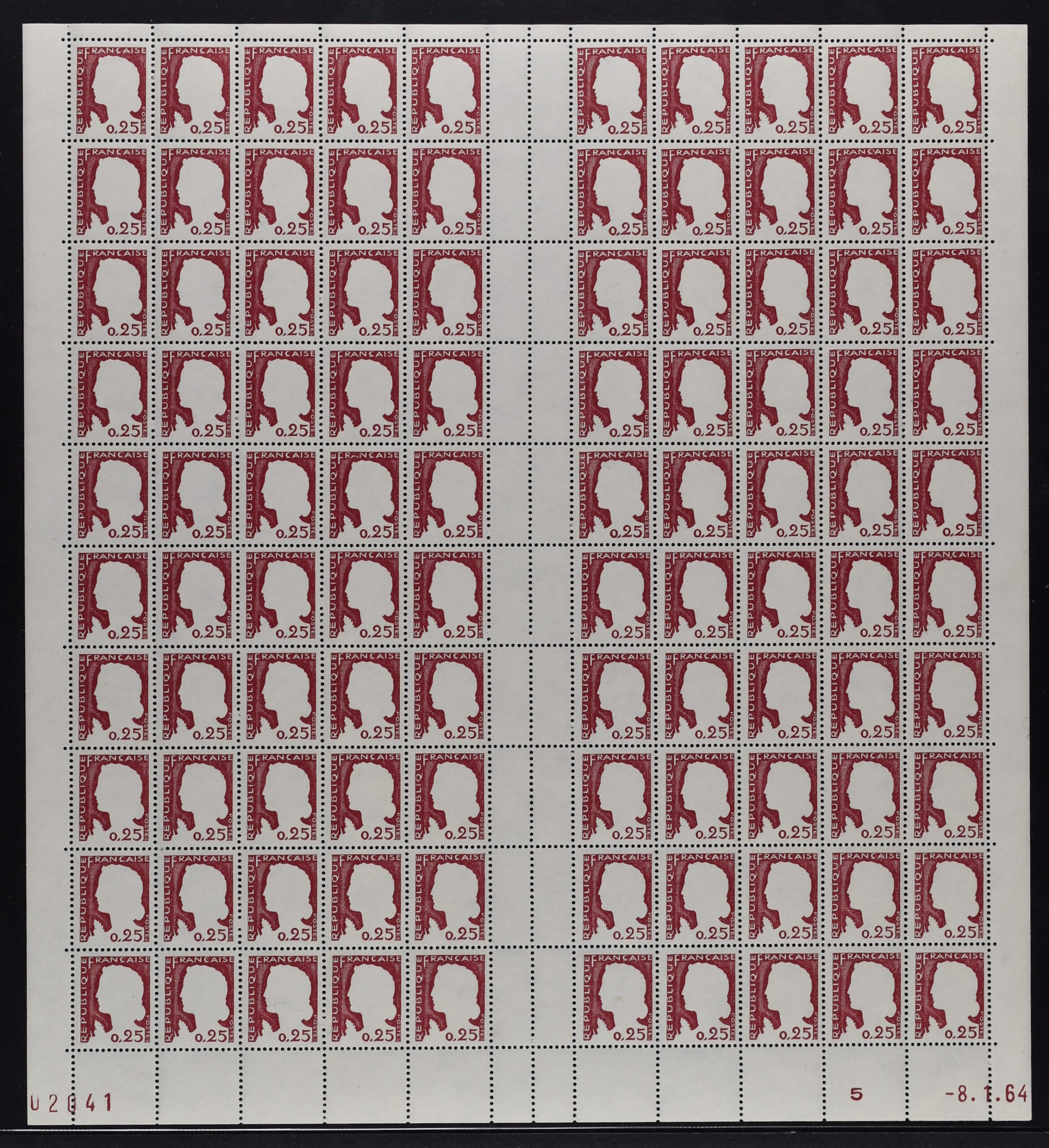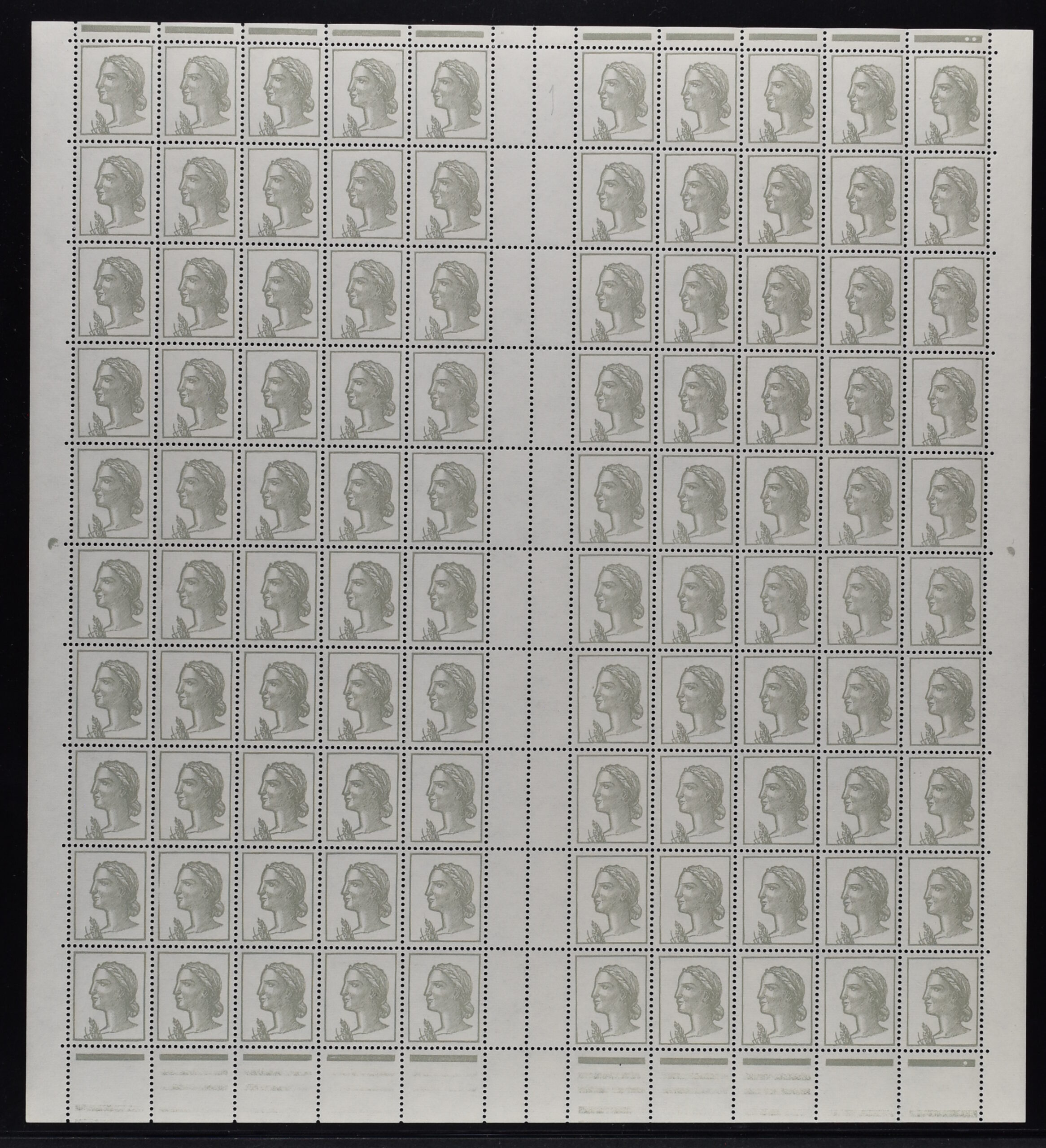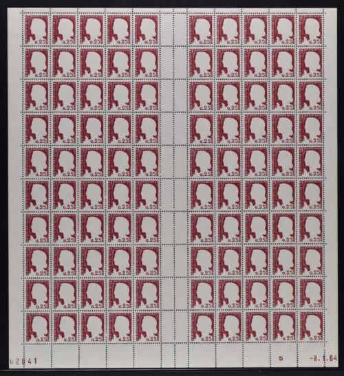 25 c. Mariaonne of Decaris 1960, two sheets, one with missing red print, the other with missing grey print, YT #1263g, 1263h – € 35’000