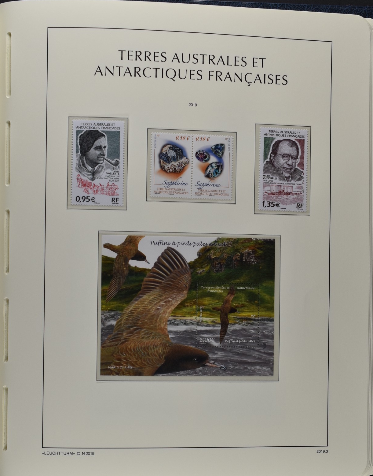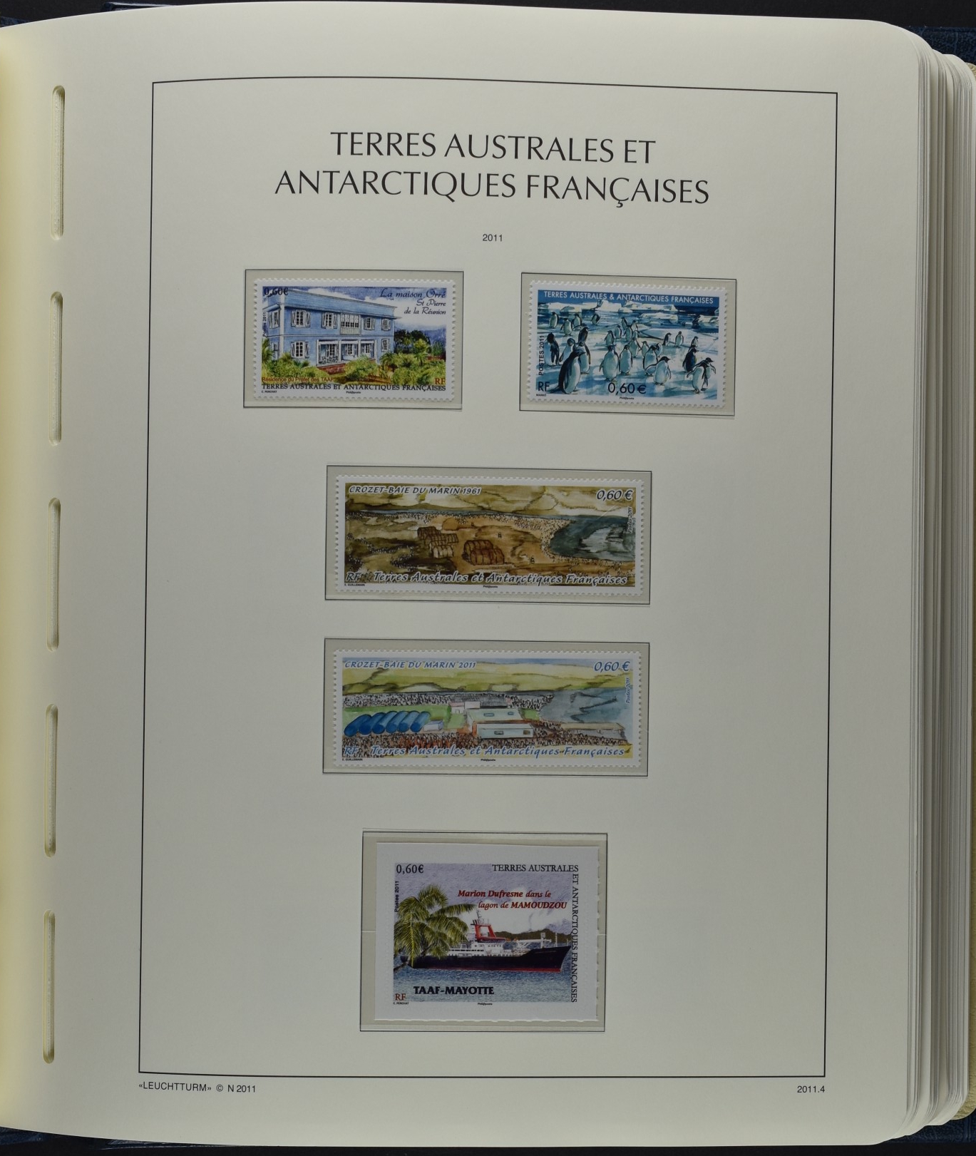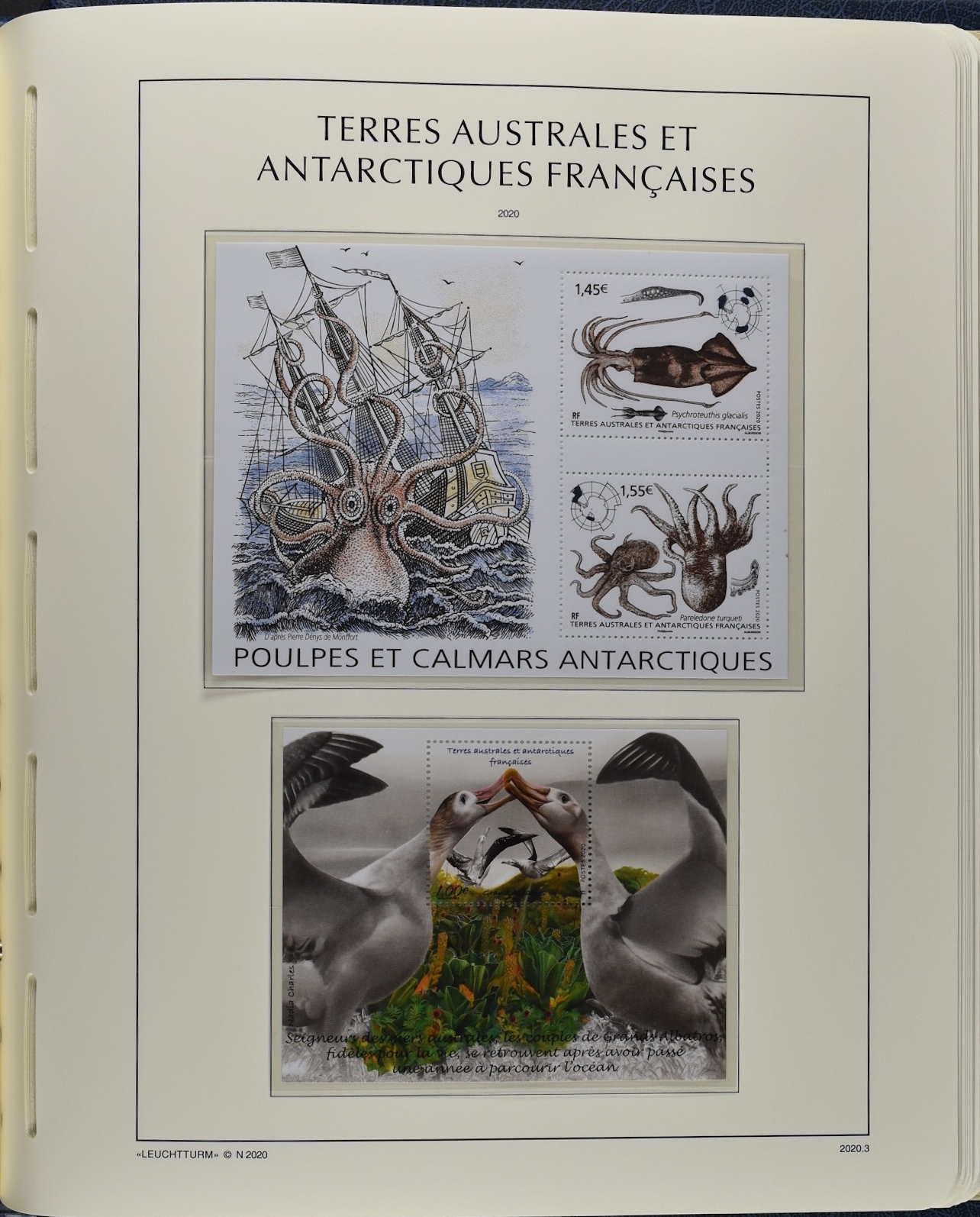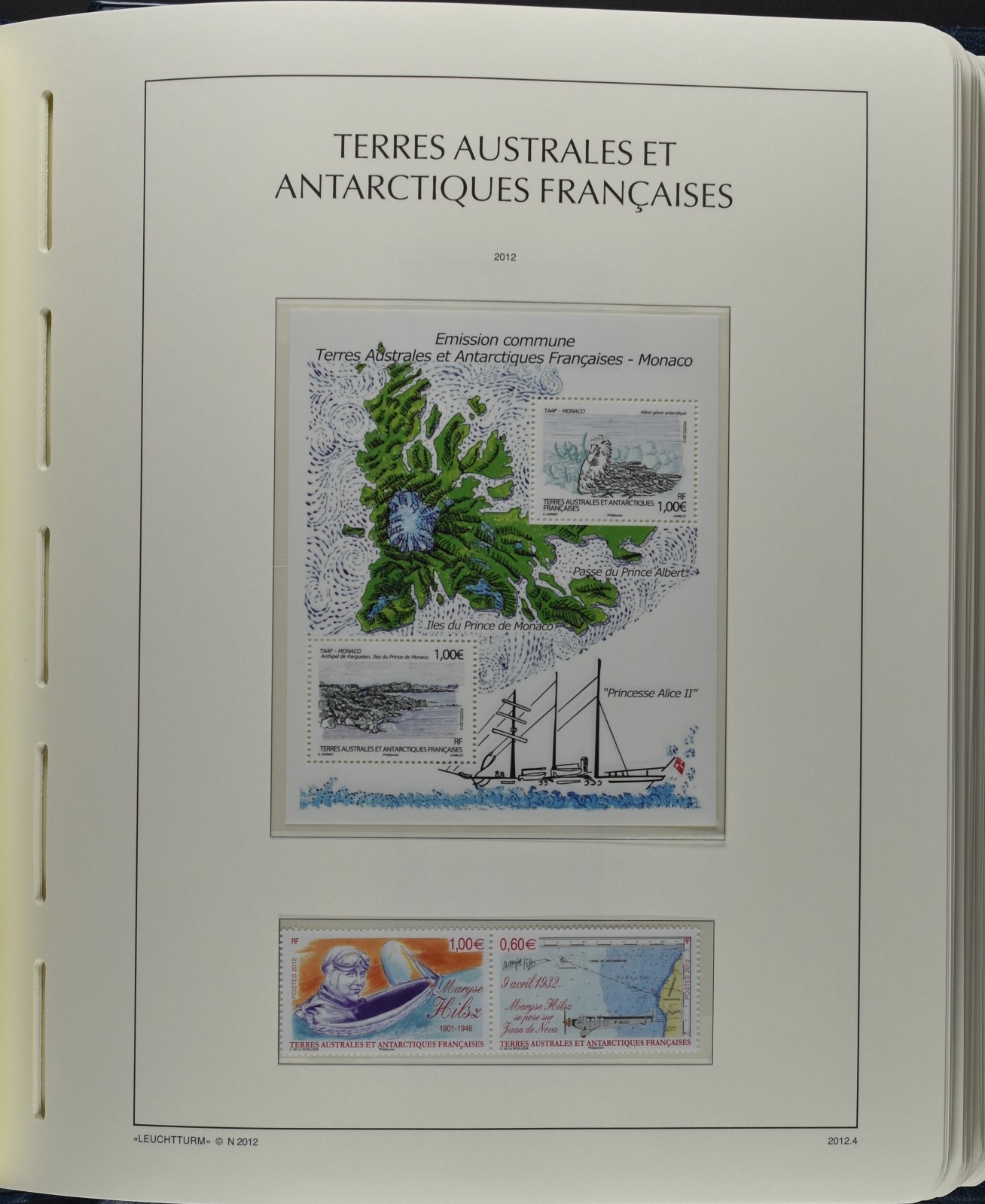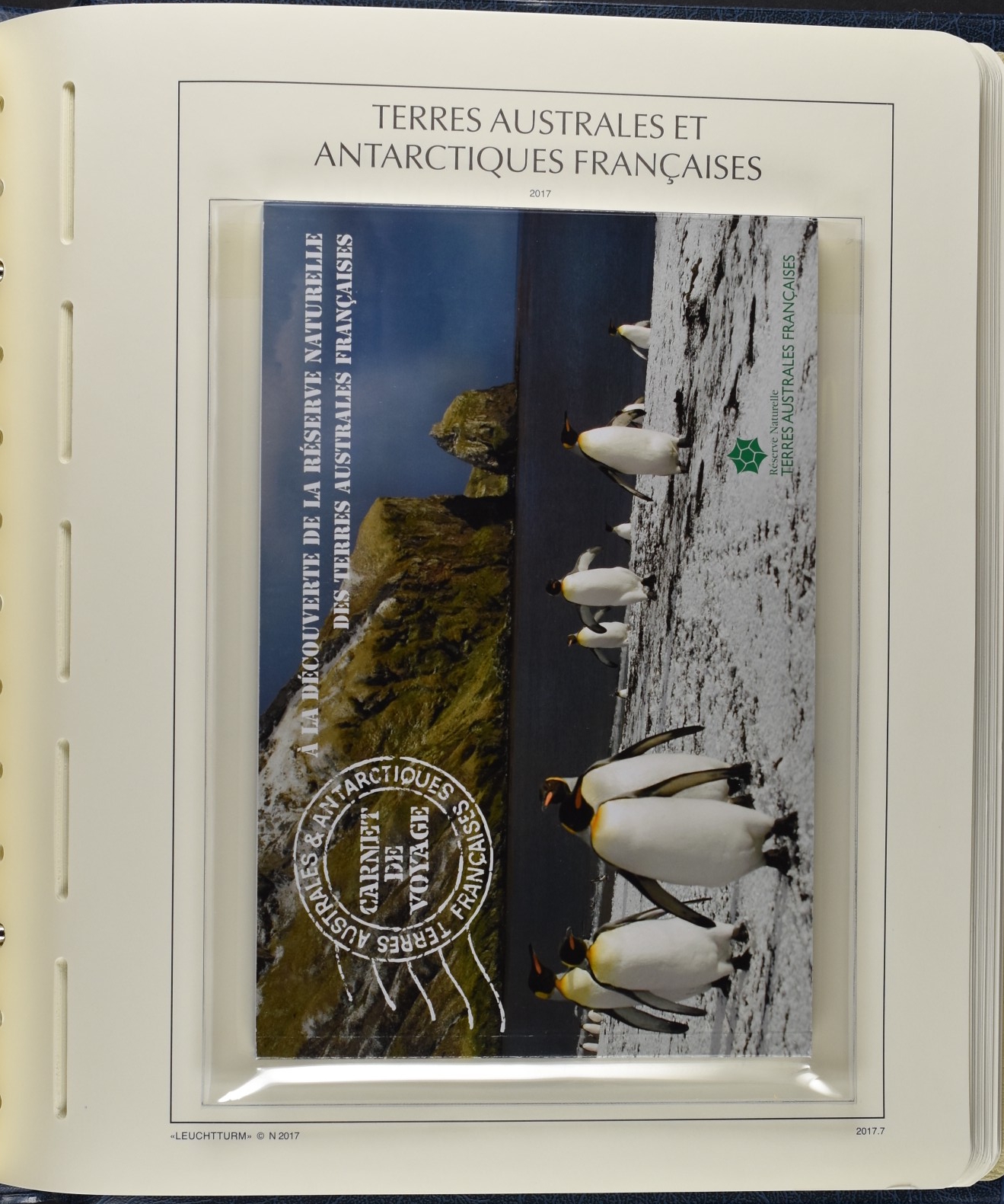 Prachtvolle moderne Sammlung der Französischen Austral- und Antarktisgebiete im luxuriösen Leuchtturm-Vordruckalbum mit Schuber. Nahezu vollständig, nur wenige Lücken, durchgehend in postfrischer Erhaltung. Die Sammlung besticht durch zahlreiche attraktive Ausgaben mit Motiven aus der Tier- und Pflanzenwelt, darunter viele Blöcke und Markenheftchen. Abgedeckt wird der Zeitraum 2010–2023, mit einem Katalogwert gemäss Yvert von rund € 1’160. Ergänzt wird die Kollektion durch eine Partie der Jahre 2001–2009 im Einsteckbuch mit einem zusätzlichen Yvert-Katalogwert von ca. € 450. Gesamtkatalogwert somit ca. € 1’610.