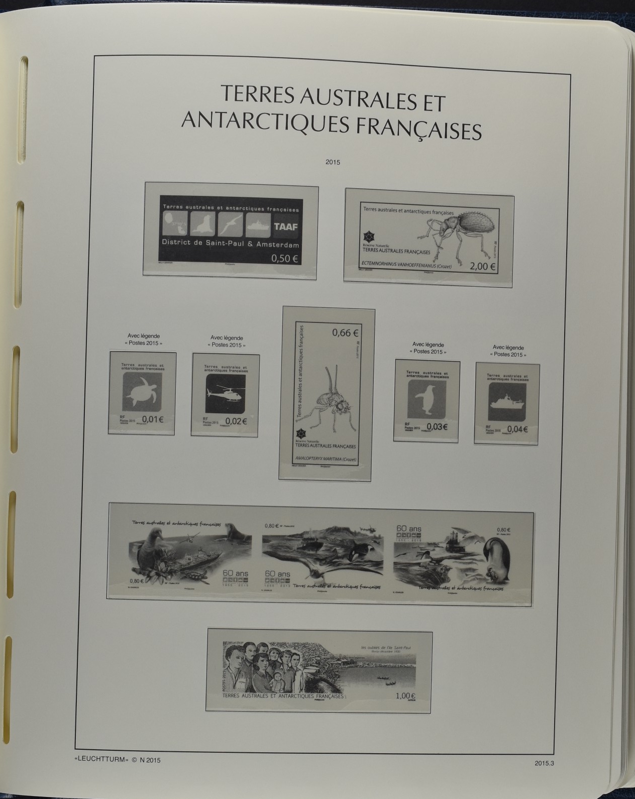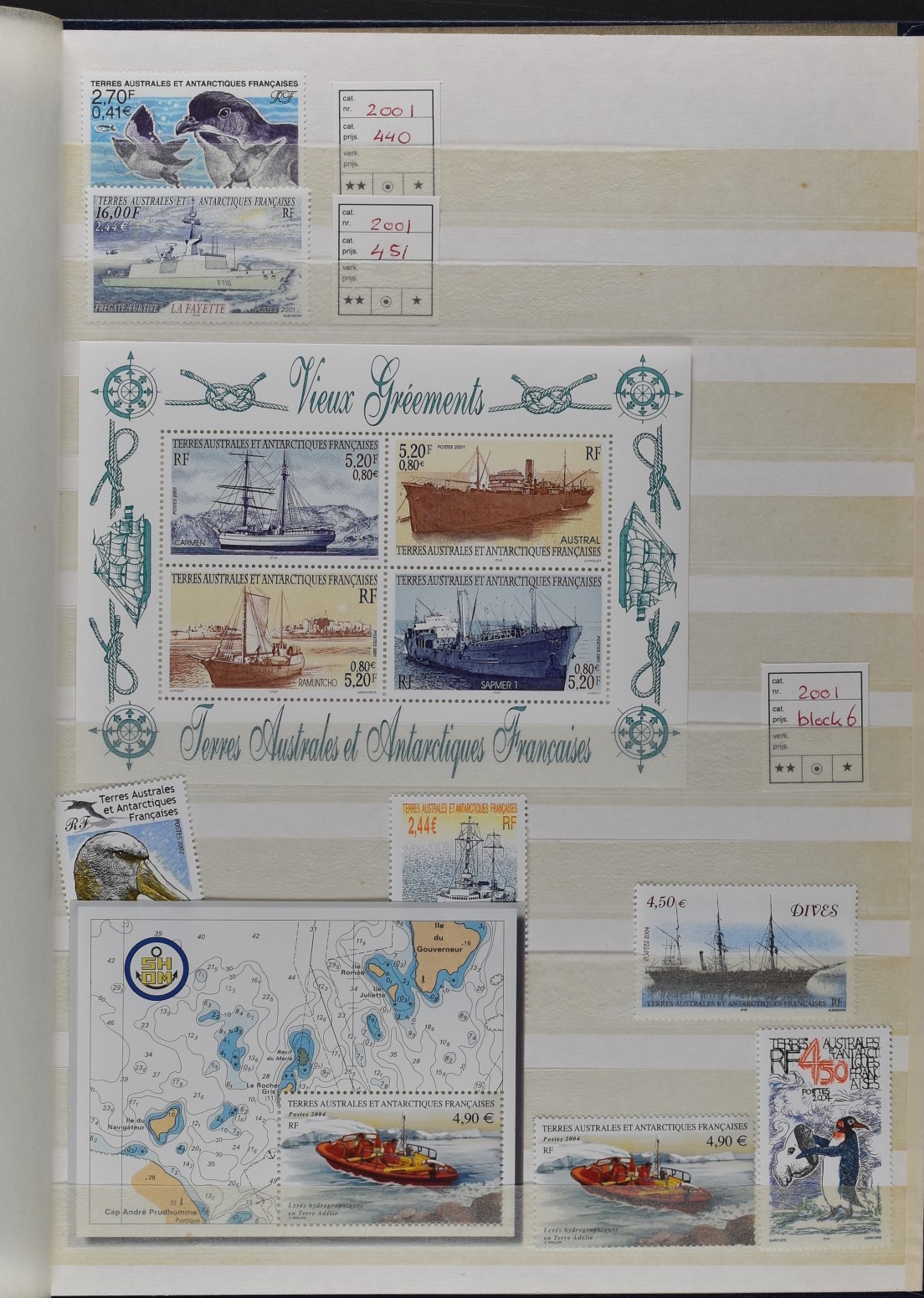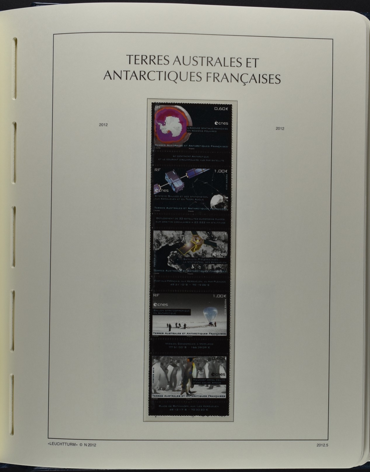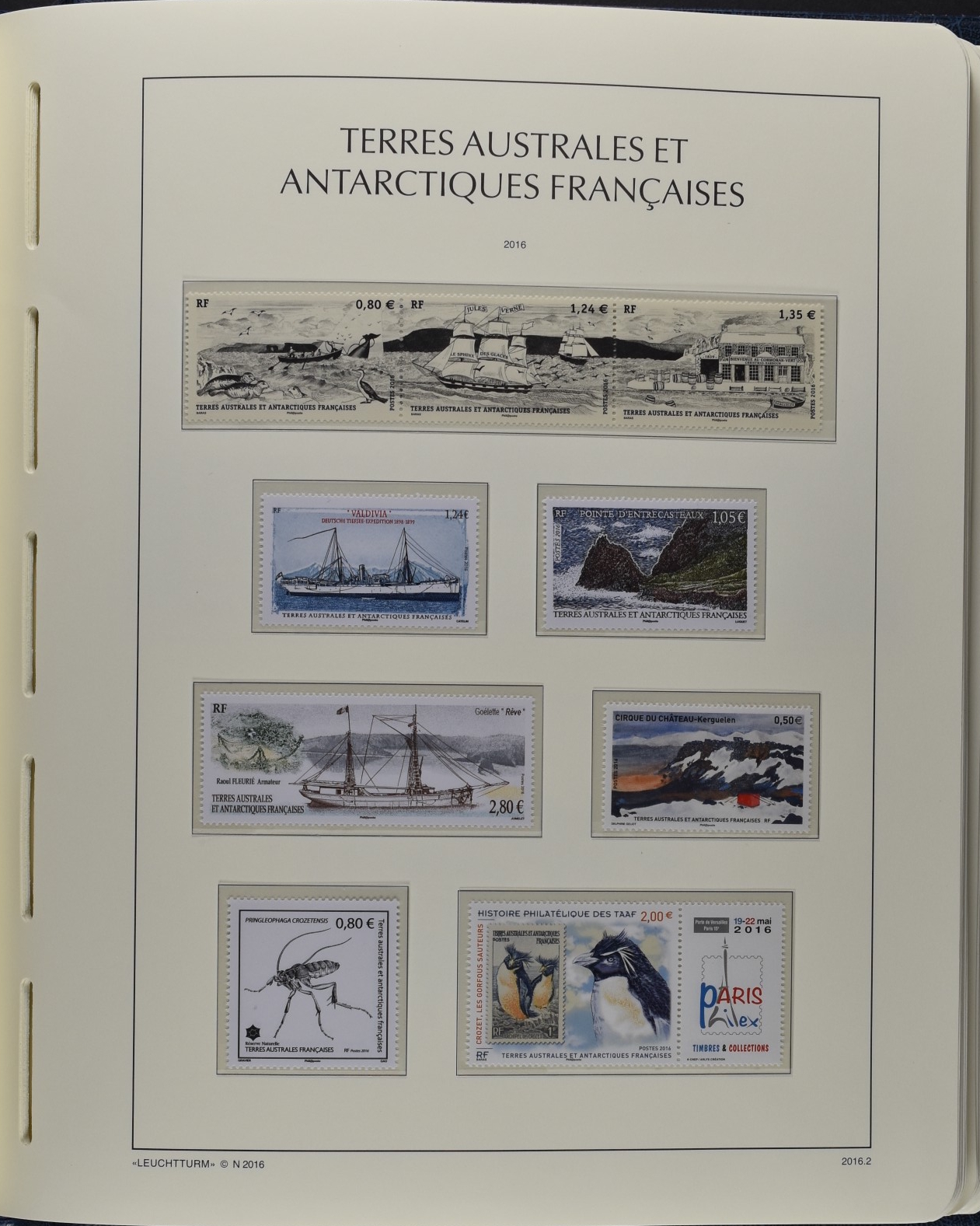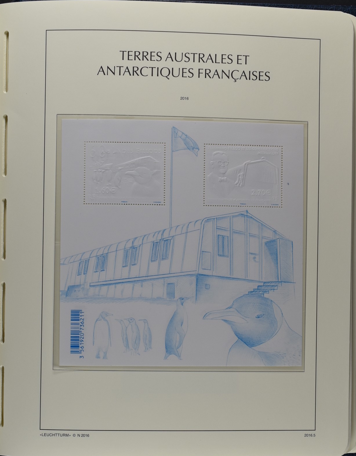 Prachtvolle moderne Sammlung der Französischen Austral- und Antarktisgebiete im luxuriösen Leuchtturm-Vordruckalbum mit Schuber. Nahezu vollständig, nur wenige Lücken, durchgehend in postfrischer Erhaltung. Die Sammlung besticht durch zahlreiche attraktive Ausgaben mit Motiven aus der Tier- und Pflanzenwelt, darunter viele Blöcke und Markenheftchen. Abgedeckt wird der Zeitraum 2010–2023, mit einem Katalogwert gemäss Yvert von rund € 1’160. Ergänzt wird die Kollektion durch eine Partie der Jahre 2001–2009 im Einsteckbuch mit einem zusätzlichen Yvert-Katalogwert von ca. € 450. Gesamtkatalogwert somit ca. € 1’610.