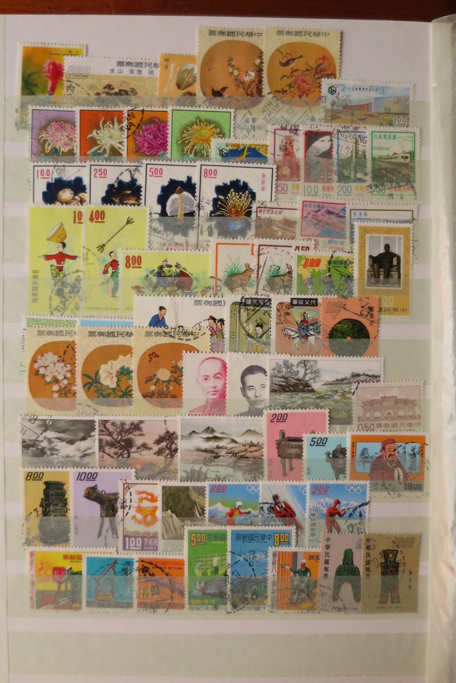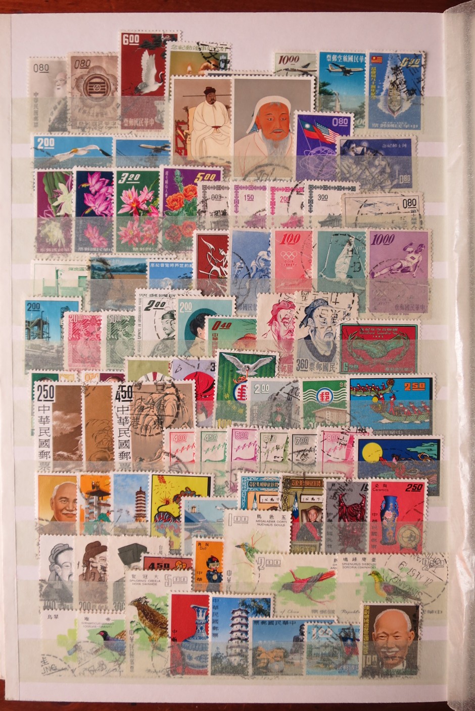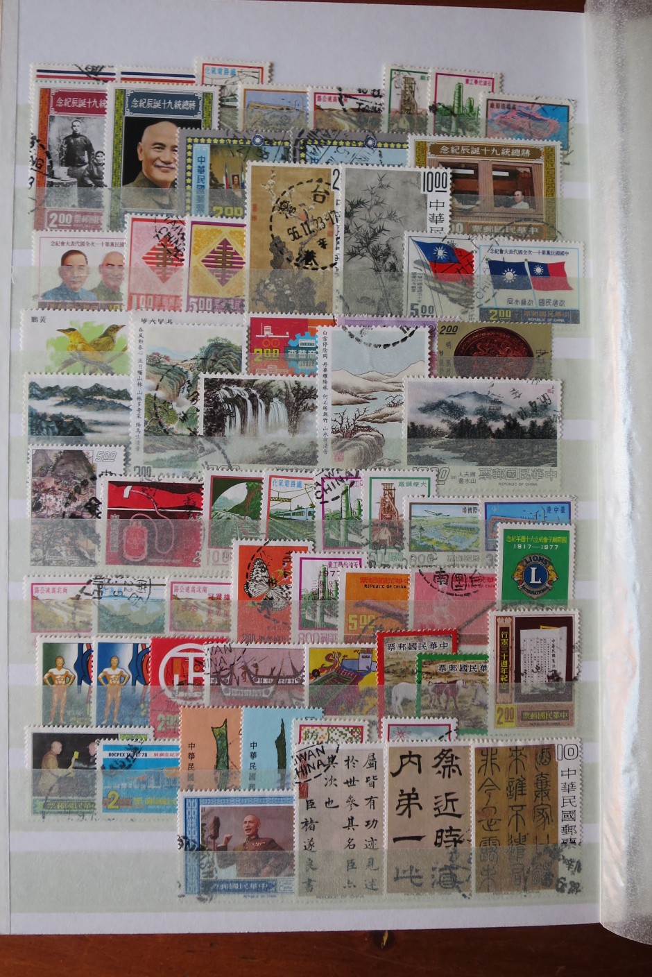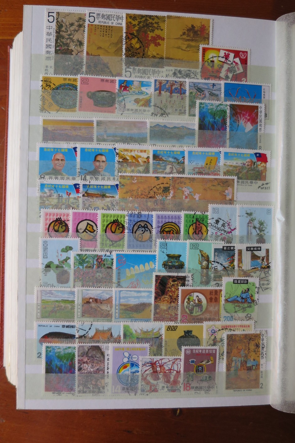 Substantial stock book containing several thousand stamps, predominantly used, with notable sections from Taiwan, Turkey, Israel, Singapore, and Hong Kong. Nothing removed and as received, unchecked in detail.