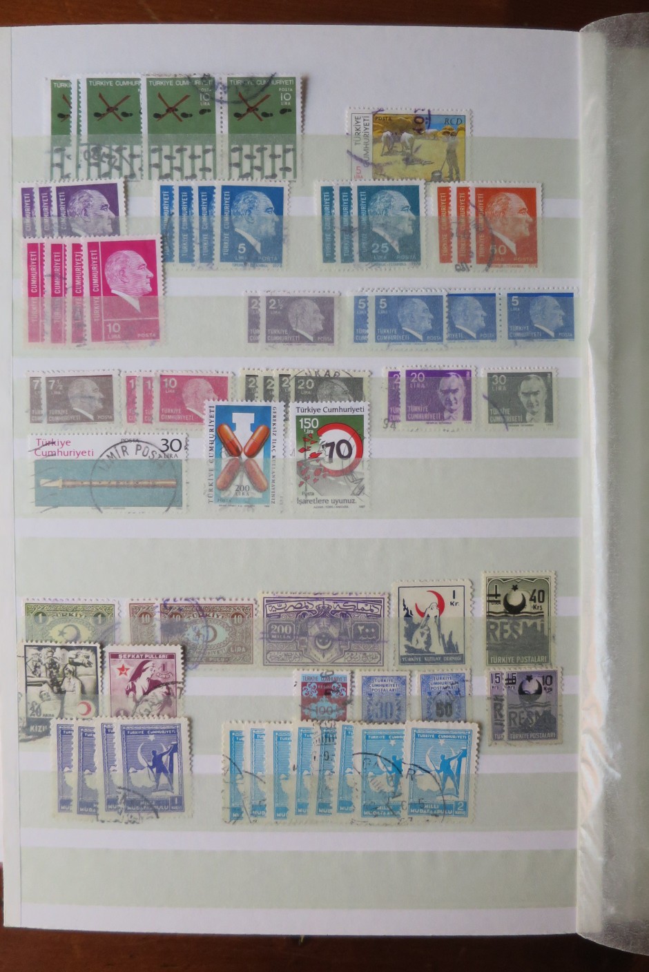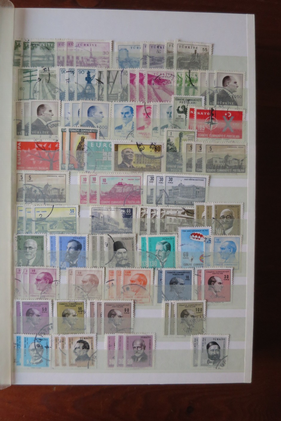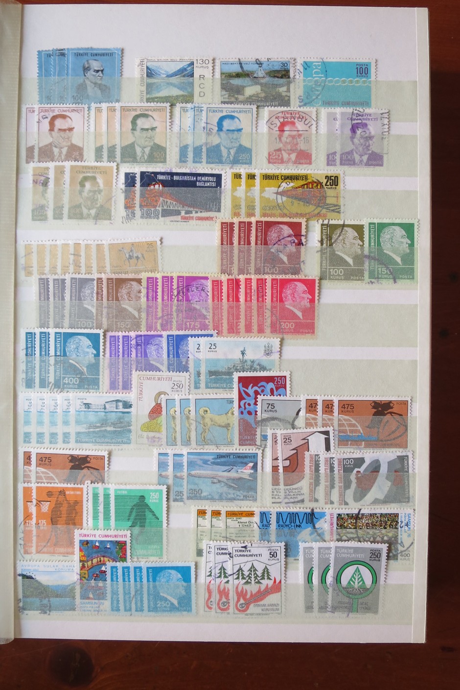 Substantial stock book containing several thousand stamps, predominantly used, with notable sections from Taiwan, Turkey, Israel, Singapore, and Hong Kong. Nothing removed and as received, unchecked in detail.