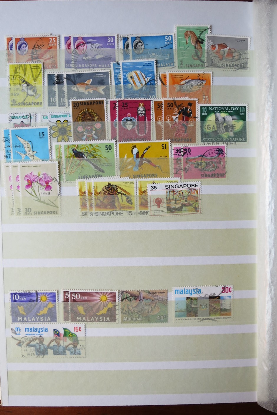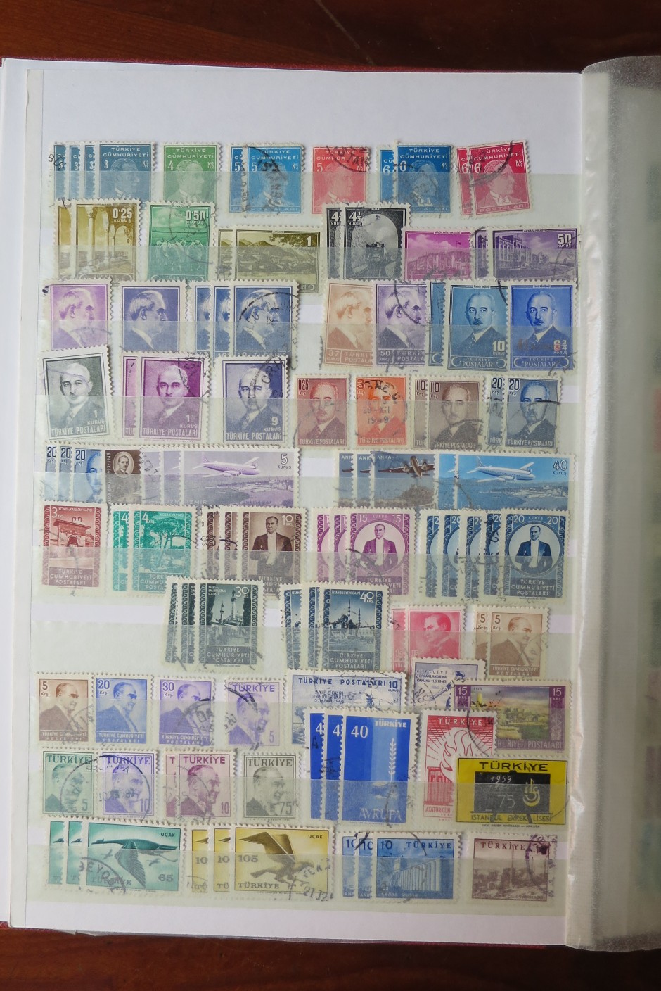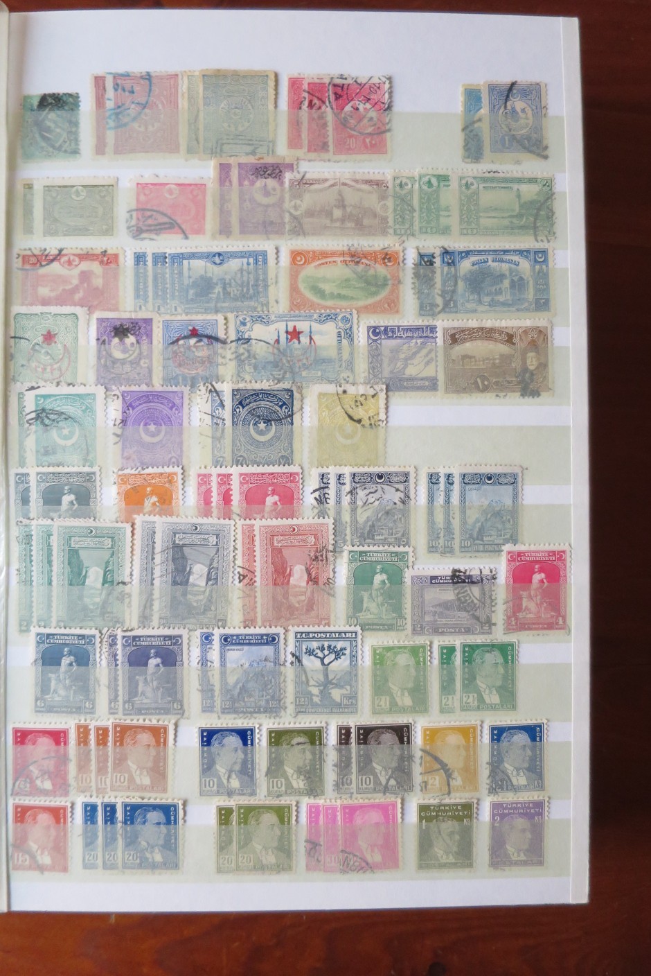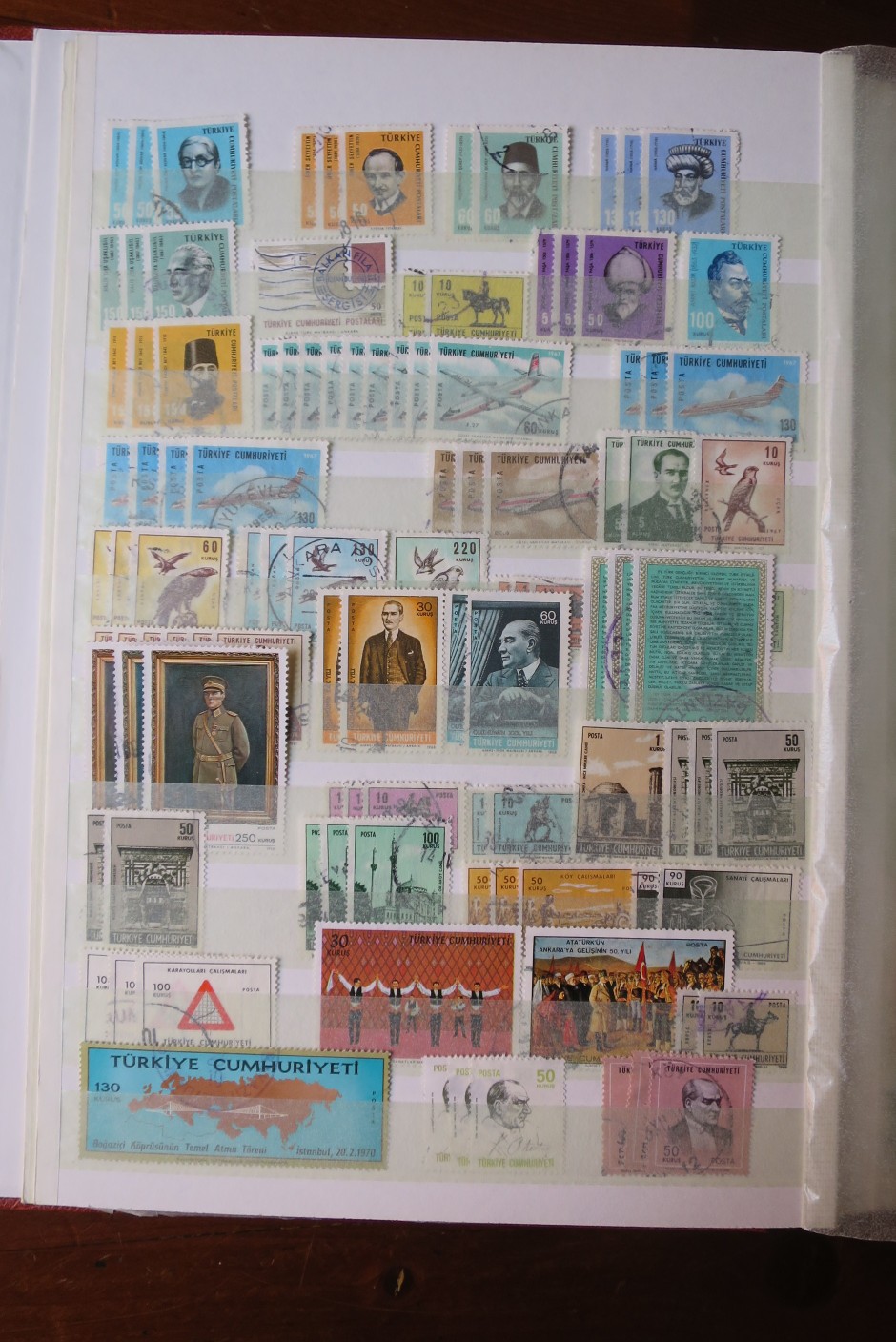 Substantial stock book containing several thousand stamps, predominantly used, with notable sections from Taiwan, Turkey, Israel, Singapore, and Hong Kong. Nothing removed and as received, unchecked in detail.