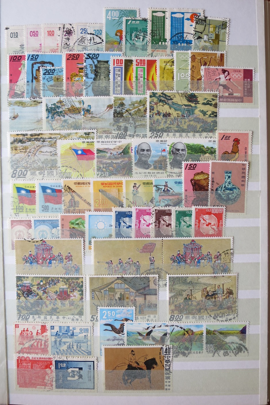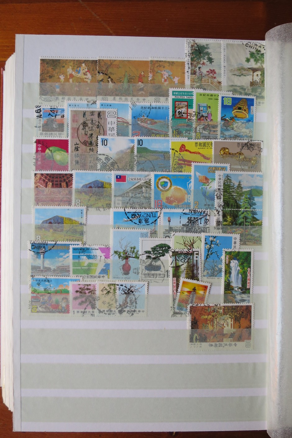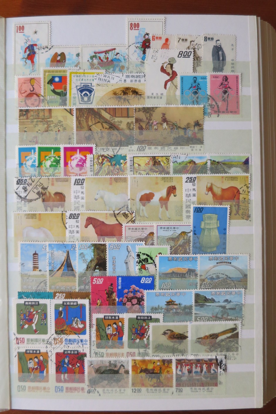 Umfangreiches Stockbook mit mehreren tausend Marken, überwiegend gebraucht, mit nennenswerten Anteilen aus Taiwan, der Türkei, Israel, Singapur und Hongkong etc, wie erhalten, nicht im Detail geprüft.