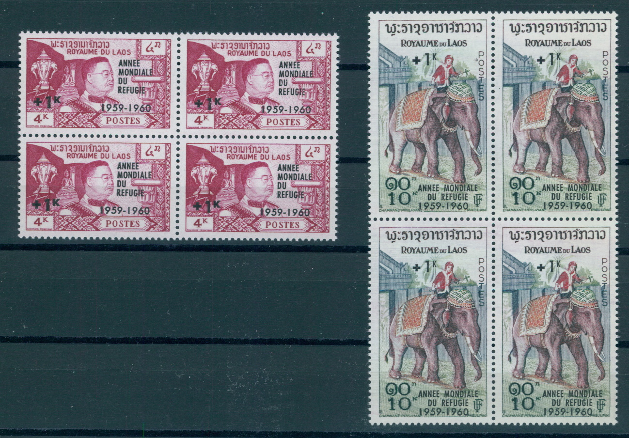 Overprint issue of 1961 including the Elephant stamp; complete Refugee Year set in blocks of four, Mi #103–04, catalog value €68.