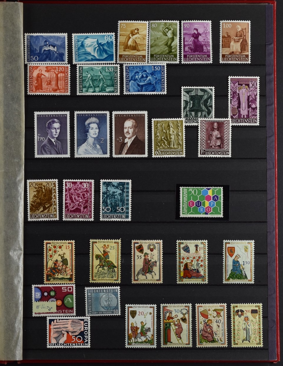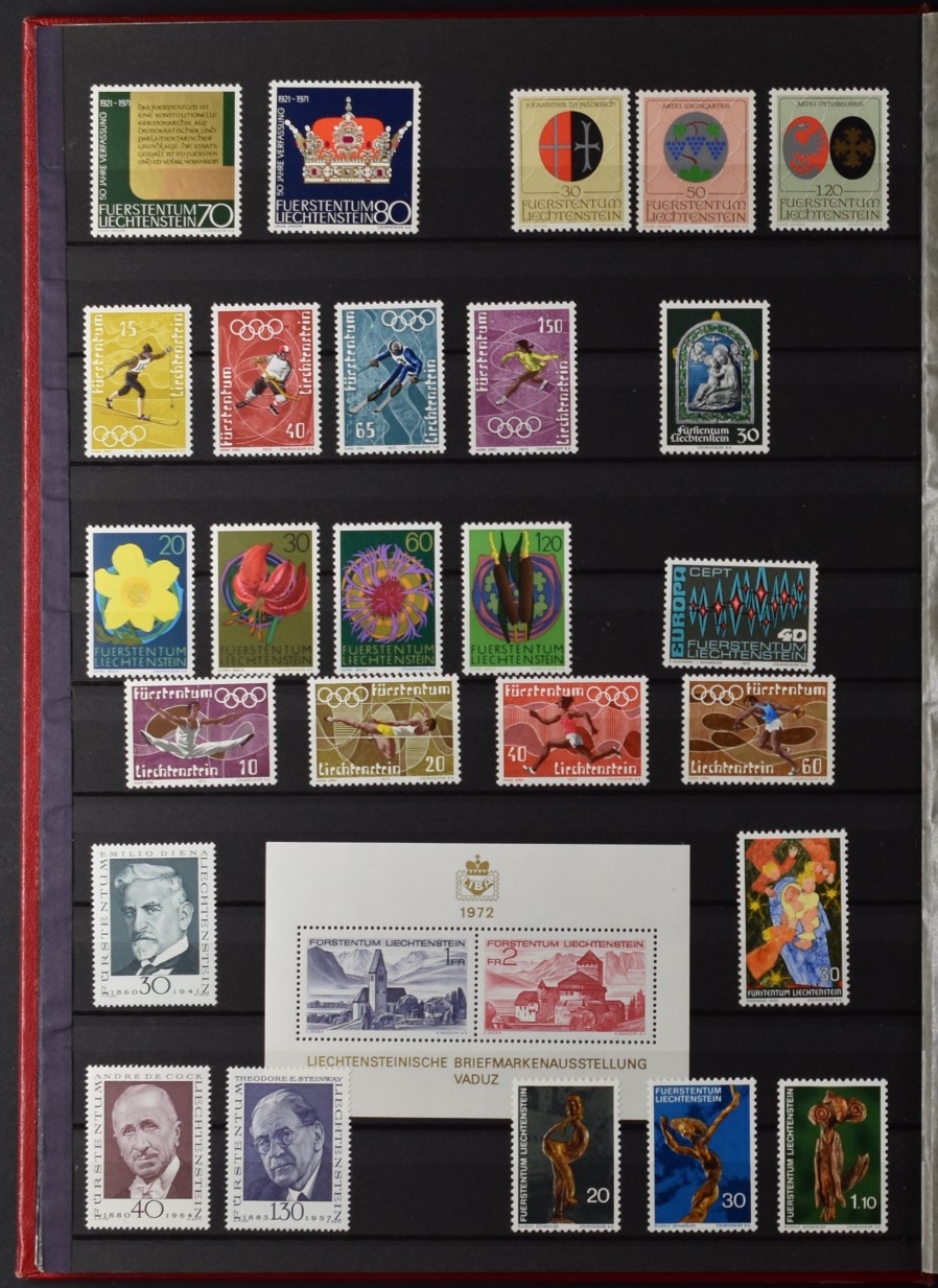 LIECHTENSTEIN, COLLECTION 1912-77 UNUSED; WITH RARE 2 FRANCS FROM 1951, NEVER HINGED / Liechtenstein, Sammlung 1912–77 ungebraucht; mit dem seltenen 2 Franken von 1951, postfrisch.