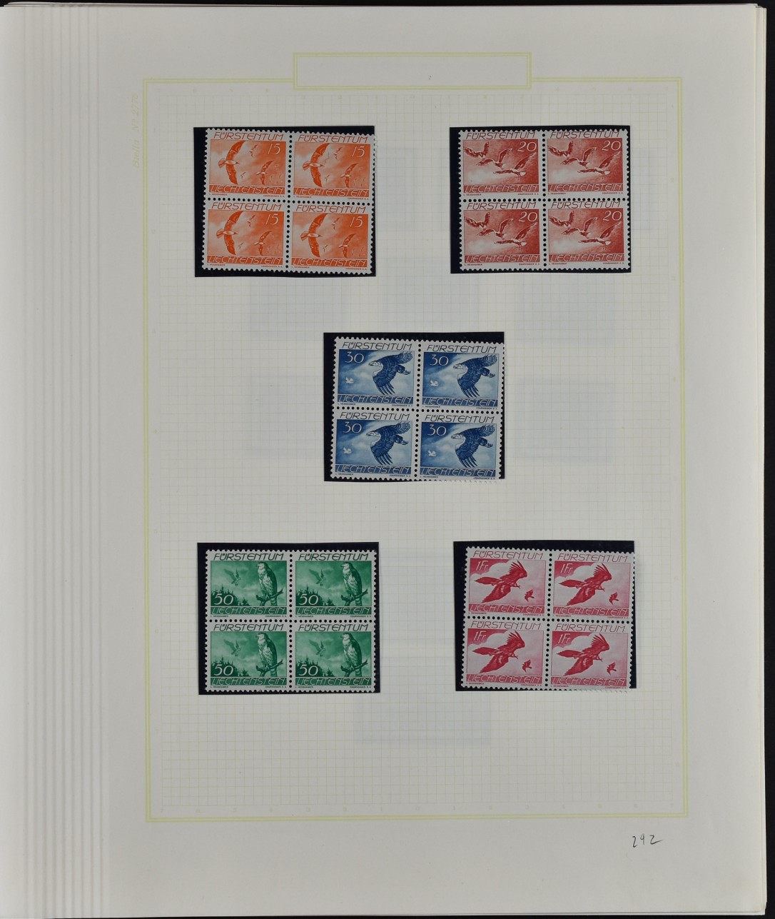 Catalogue value CHF 11’260.Ansprechend aufgebaute Sammlung mit gestempelten, ungebrauchten und postfrischen Ausgaben, darunter zahlreiche bessere Sätze und Werte, wie etwa Zeppelin-Belege, Luftpost-Ausgaben in Viererblocks und weiteres. Katalogwert CHF 11’260.