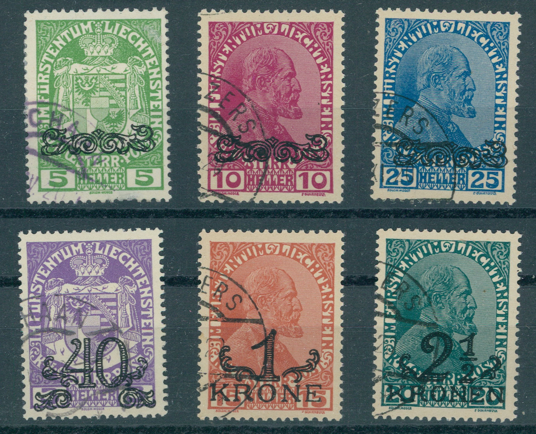 LIECHTENSTEIN, PROVISIONALS 1920 VFU SET USED / Liechtenstein, Provisorien 1920, Kabinett-Satz, gestempelt.