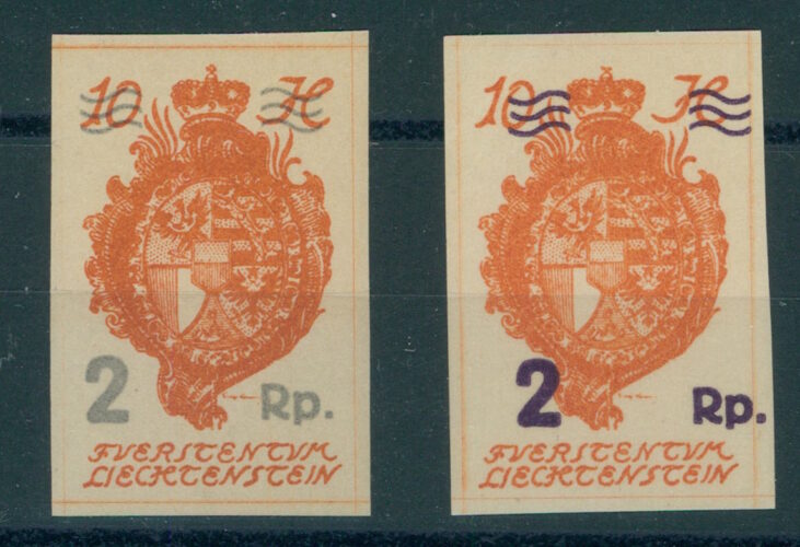 Rare variety of the 2 Rp on 10 H surcharge (1920) in pale violet (as on the stamp with the thin surcharge), LBK 43FII, CHF 220.