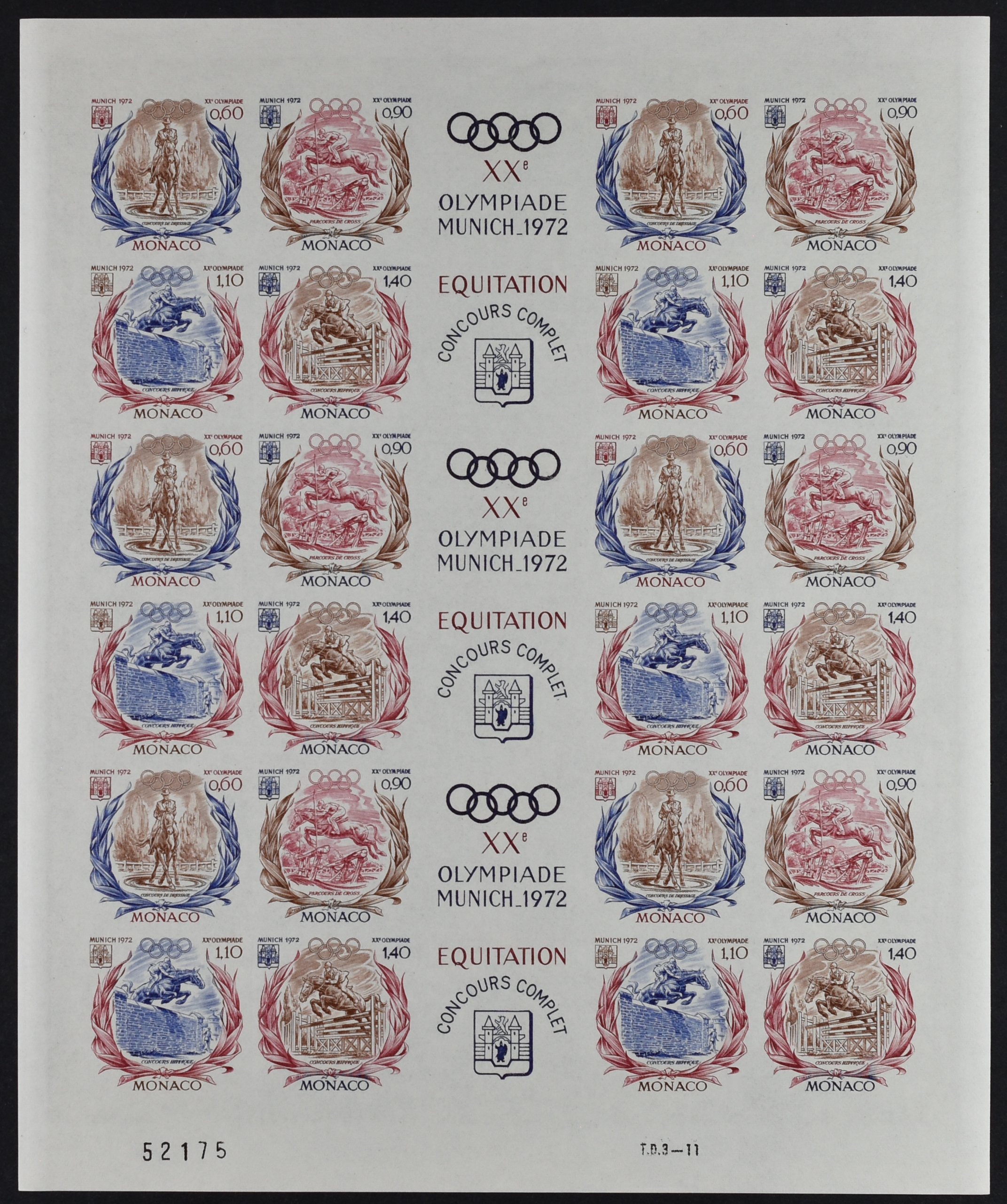MONACO, XXth OLYMPIC GAMES 1972, FULL SHEET IMPERFORATE NEVER HINGED