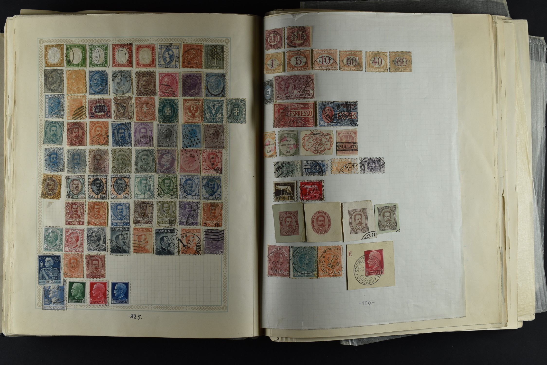 Altsammlung auf Blättern in  Klemmbinder. Enthält ältere Marken von den Anfängen an, darunter Andorra, Dänemark, Finnland, Grossbritannien, Italien, Luxemburg, die Niederlande, Spanien, Schweden und die Schweiz. Kaum etwas entnommen; verkauft wie eingeliefert.