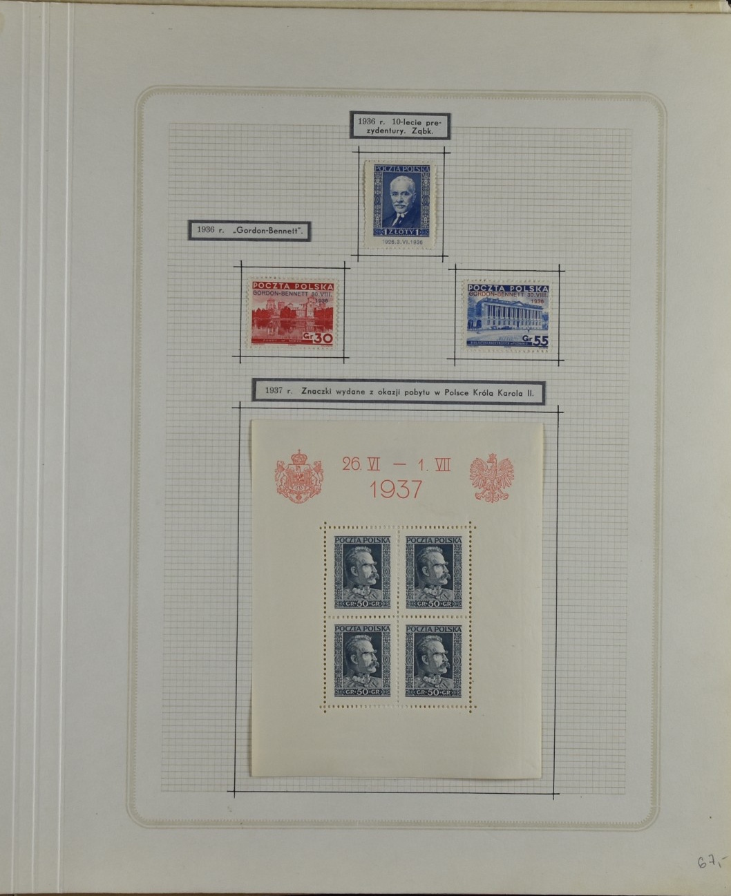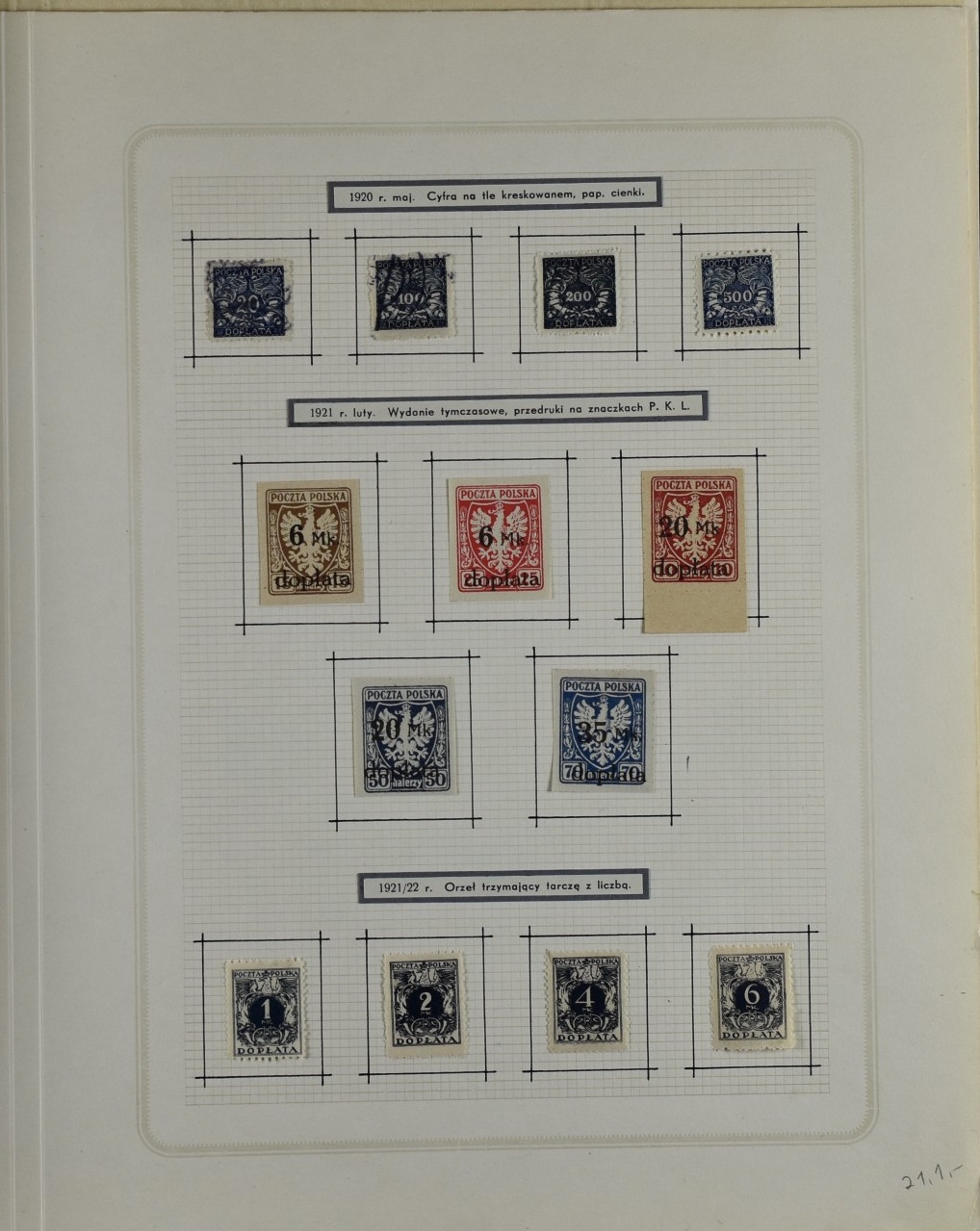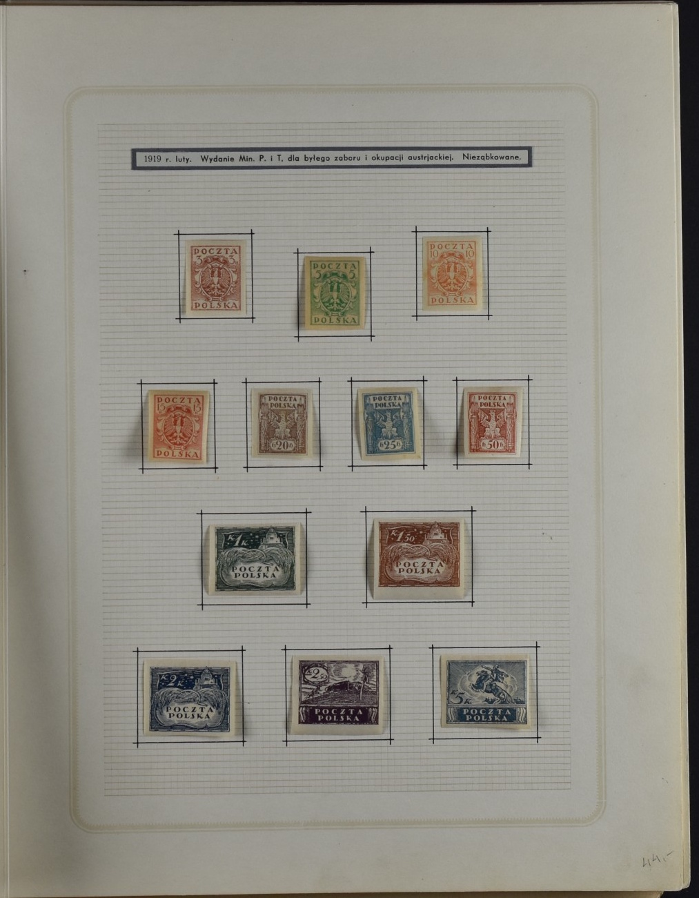 Fairly good remainder collection with only a few stamps removed by the previous owner, including overprints and miniature sheets, unchecked. Good page with city post Żarki stamps (all genuine), Przedbórz (many genuine), stamps for the Warsaw city post (never issued) 8used  for the first Polish issue of 1918, without overprint and imperforate. Collection Includes Krakow surcharges (not guaranteed), Levant set, possibly reprints. 1:1 as received.