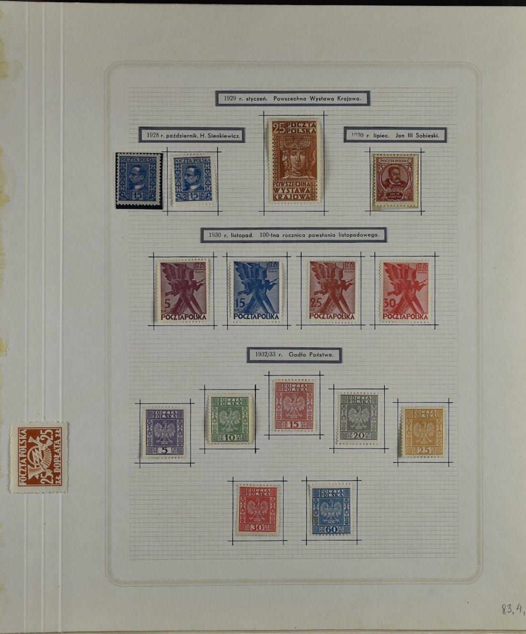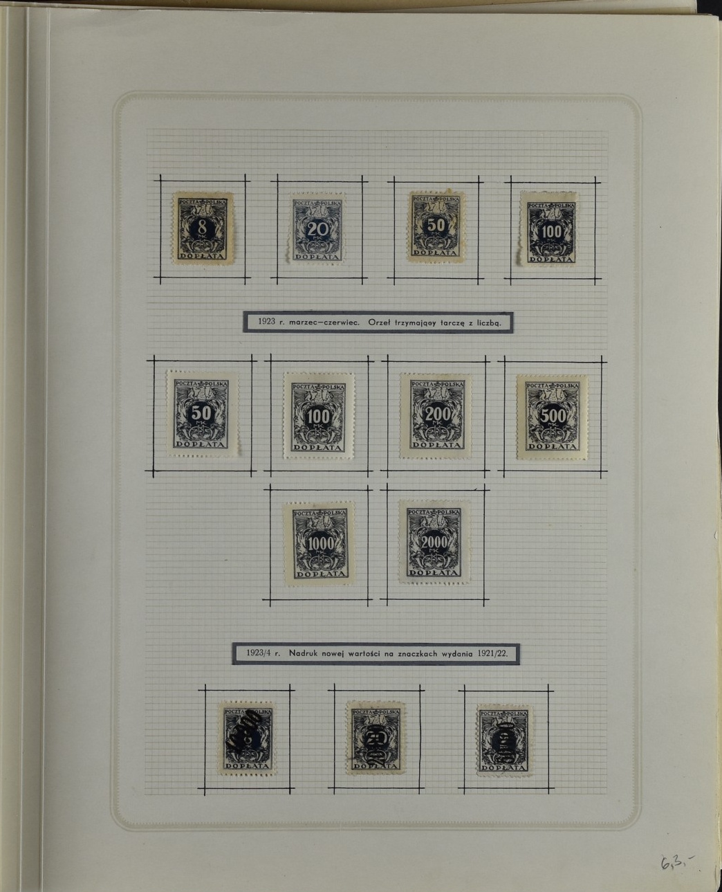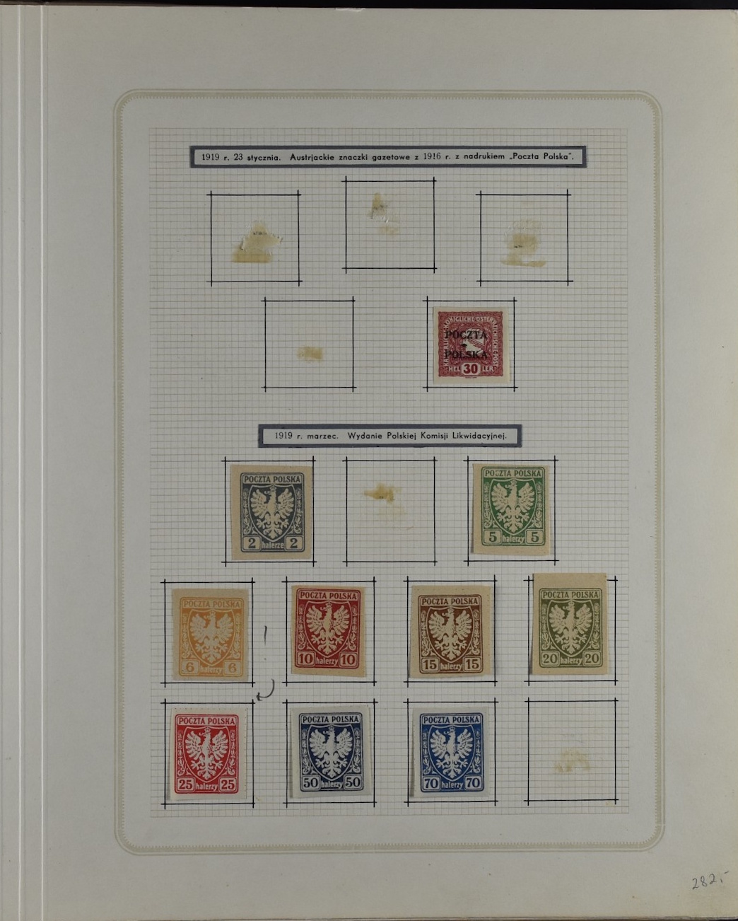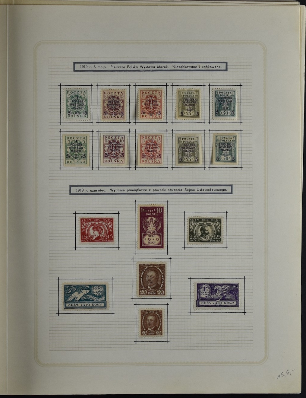 Fairly good remainder collection with only a few stamps removed by the previous owner, including overprints and miniature sheets, unchecked. Good page with city post Żarki stamps (all genuine), Przedbórz (many genuine), stamps for the Warsaw city post (never issued) 8used  for the first Polish issue of 1918, without overprint and imperforate. Collection Includes Krakow surcharges (not guaranteed), Levant set, possibly reprints. 1:1 as received.