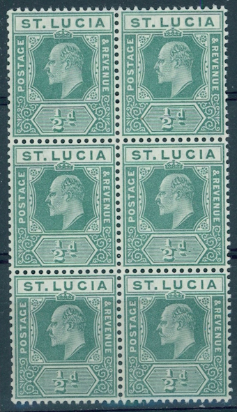 ST. LUCIA,½ d, EDWARD VII, BLOCK OF 6, MNH